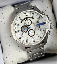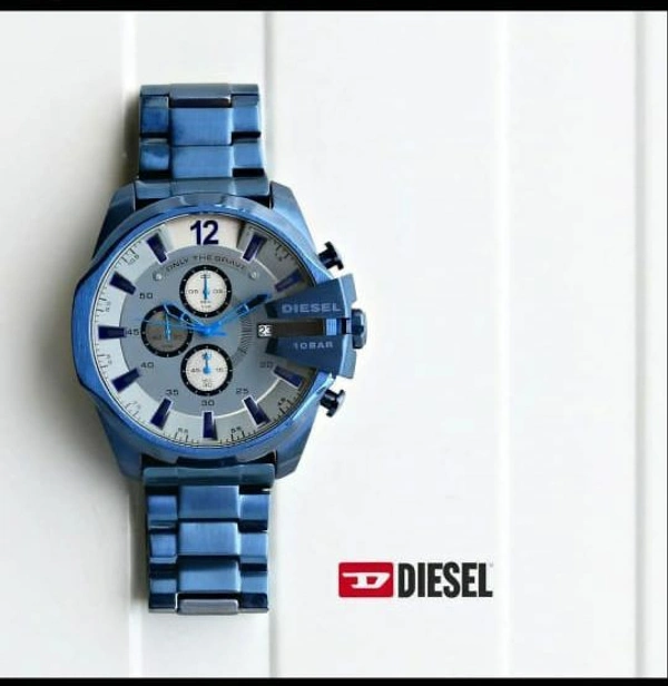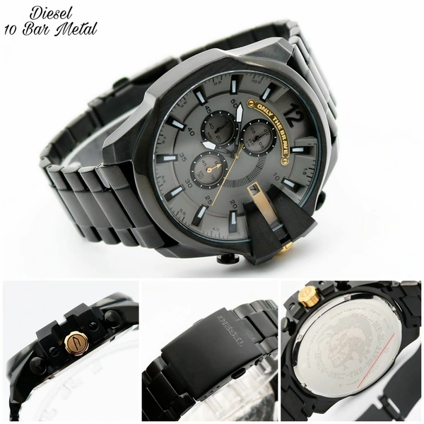 # Feature-Working Chronograph, full stainless steel rust free gold silver black matte metal bracelet with new beautiful look Gold Gary white black blue dial, Black white contrast needles, gold Diesel embossing time adjusting screw & *Guaranteed Heavy Quality original Chronograph Machinery* β€