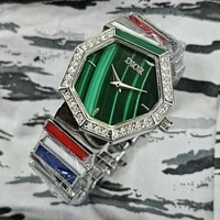 👉🏽 Features: Powered by original Japanese quartz machinery, Stainless-steel rosegold assymetrical case with studded bezel, Anti-reflective sapphire glass on a mother-of-pearl dial with rosegold hands, fastened by a stainless-steel rosegold jewellery bangle with studded and various minerals.