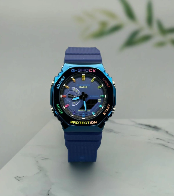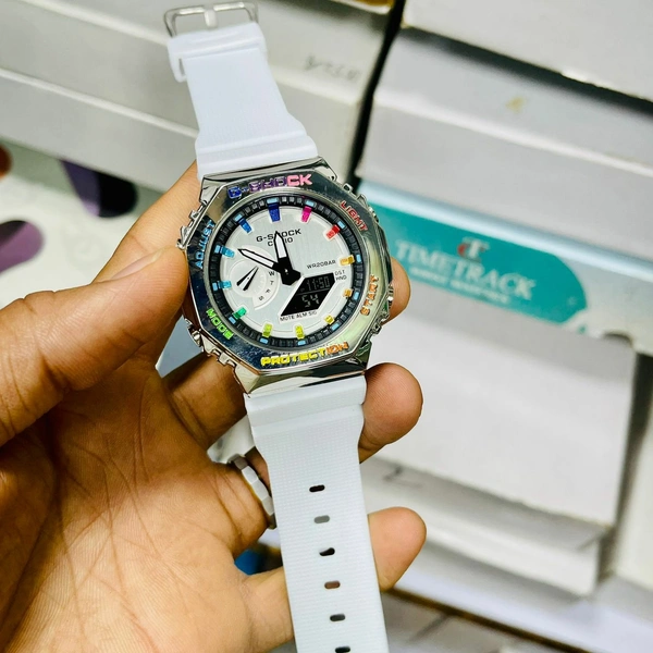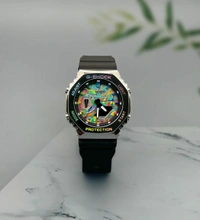 *G-Shock CasiOak Silver Steel Rainbow,Crafted with a stainless Silver Steel case and rubber strap*