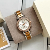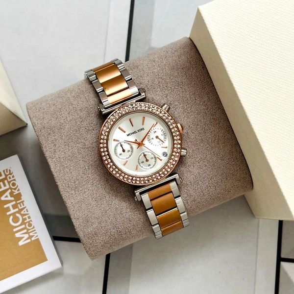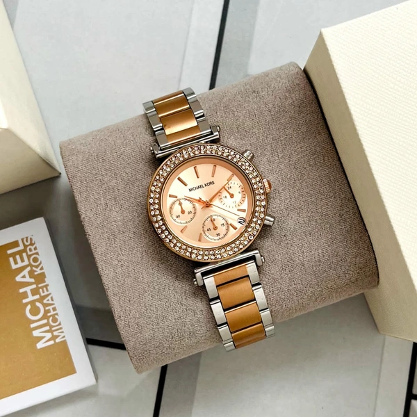 💫 *Festive and feminine, a glitz topring embellishes the stainless tone stainless steel case ROSE,ROSE TWO TONE& SLIVER tone bracelet takes this Michael Kors watch to a new level of chic* 💫