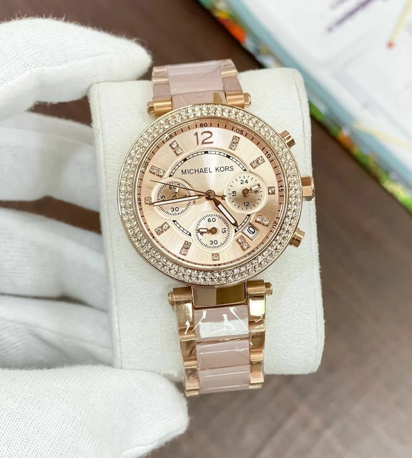 💫 *Festive and feminine, a glitz topring embellishes the stainless steel case rosegold bracelet takes this Michael Kors watch to a new level of chic* 💫
