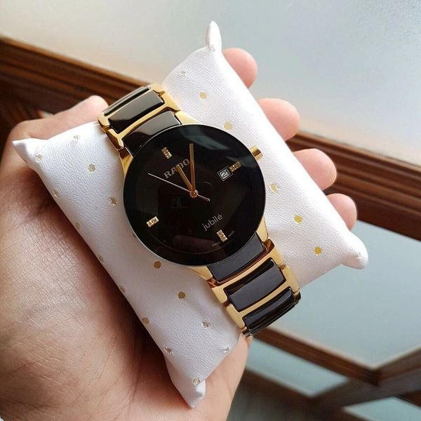 Full ceramic ,Japan machine ,bettery operate, date indicator, gold Black gold white white rust free chain with original rado lock ,classic look .