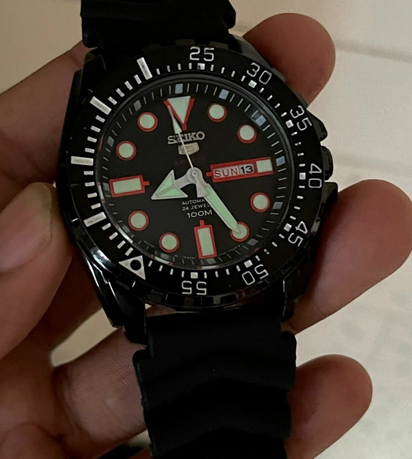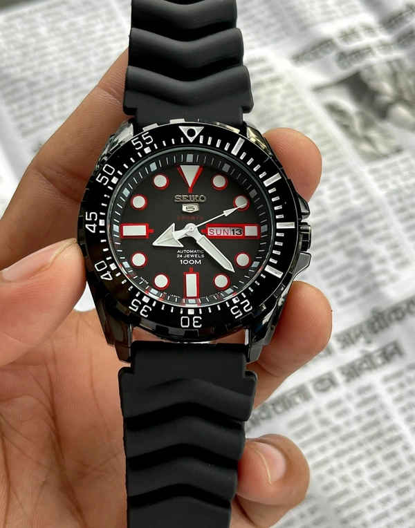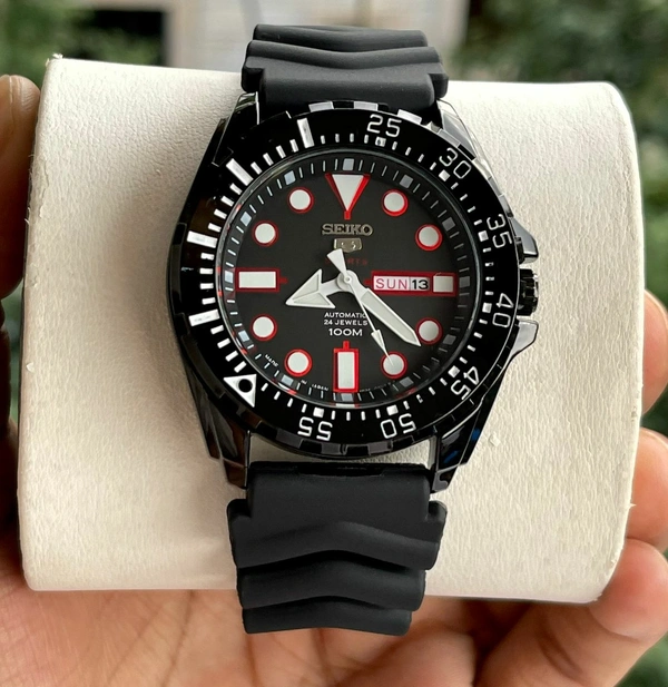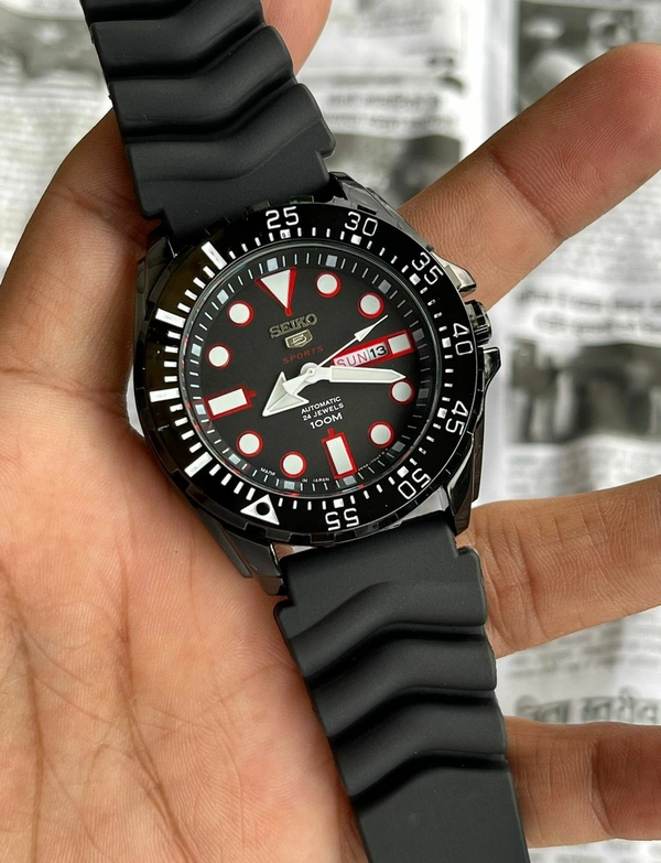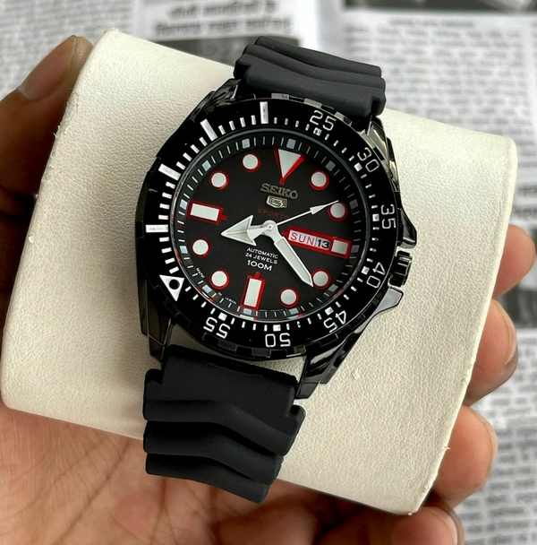 ๐๐ฝ Features: Powered by original Japanese quartz automatic calibre, stainless-steel black polished case with uni-directional rotating black bezel, mineral crystal glass on a black dial with day,date window and luminous indices and hands, fastened by a high quality black silicone strap.