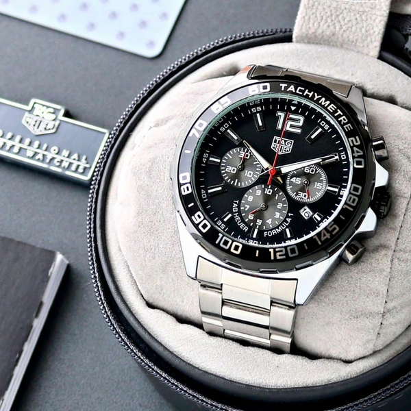 ✅ *_A sporty TAG Heuer Carrera chronograph equipped with rotating bezel reflects its roots in the pits and paddocks of motor-racing._*✅