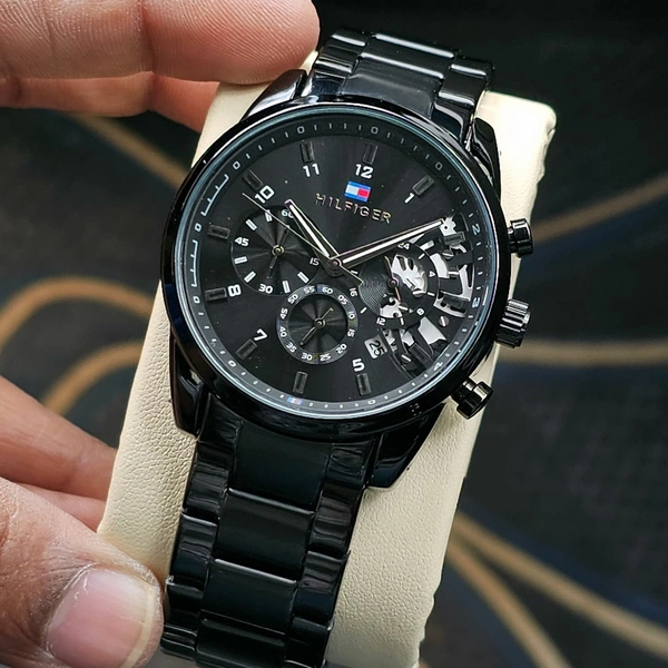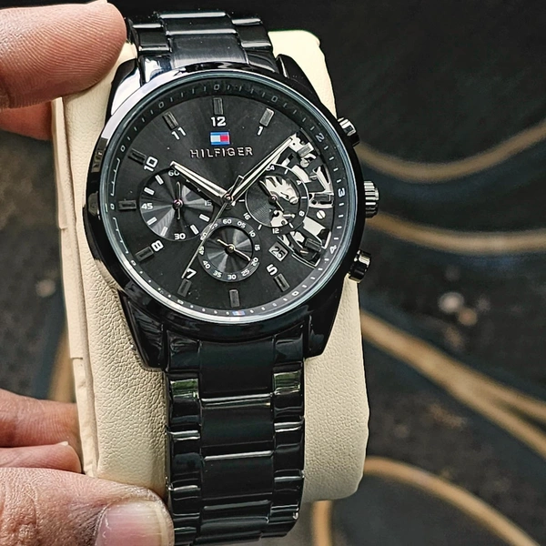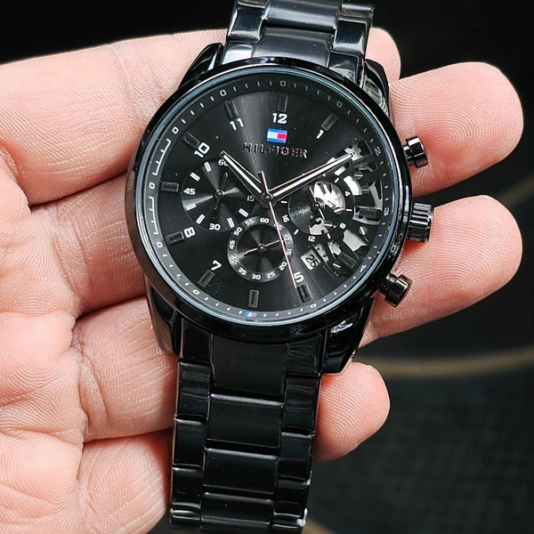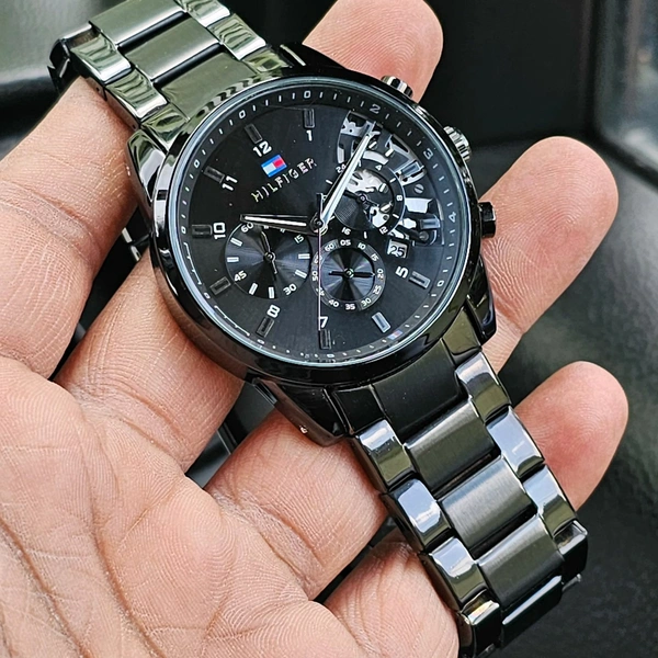 *New Model Of Tommy Hilfiger Full Black With All Chrono Working*🔥🔥